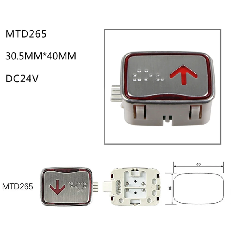 Botón de ascensor de 5 piezas MTD265 para accesorios de ascensor SIGMA Color de la luz: luz azul/luz roja Característica: con Braille/sin Braille Agujero: 40mm(L)* 30,5mm(W) Voltaje: DC24 voltios Nota: ¡Por favor, indique los caracteres que desea al realizar el pedido!   El tamaño del orificio: debido a…